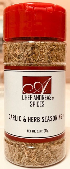 Chef Andreas custom blended garlic and herb seasoning adds savory flavor to any chicken. fish. vegetable or beef dish, whether cooking on the grill or oven roasting. Full of great flavor and perfect for any style of preparation.
